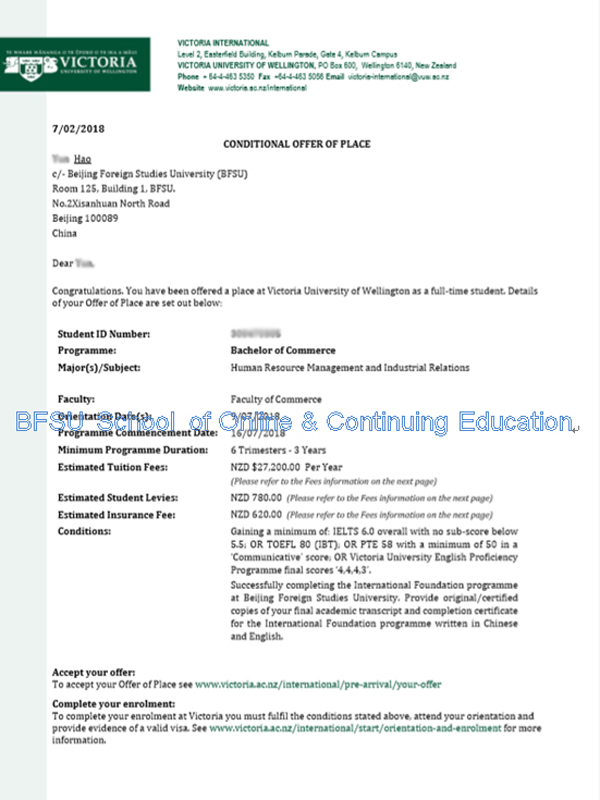 恭喜北外留学班郝*迪同学被新西兰惠灵顿维多利亚大学录取 时间:2018-02-15信息来源:本站原创点击:次【 加入收藏 】【 字体:大 中 小 】 北外留学预科班艾丽*同学被昆士兰大学录取 恭喜北京外国语大学留学预科班石*被曼彻斯特大学录取